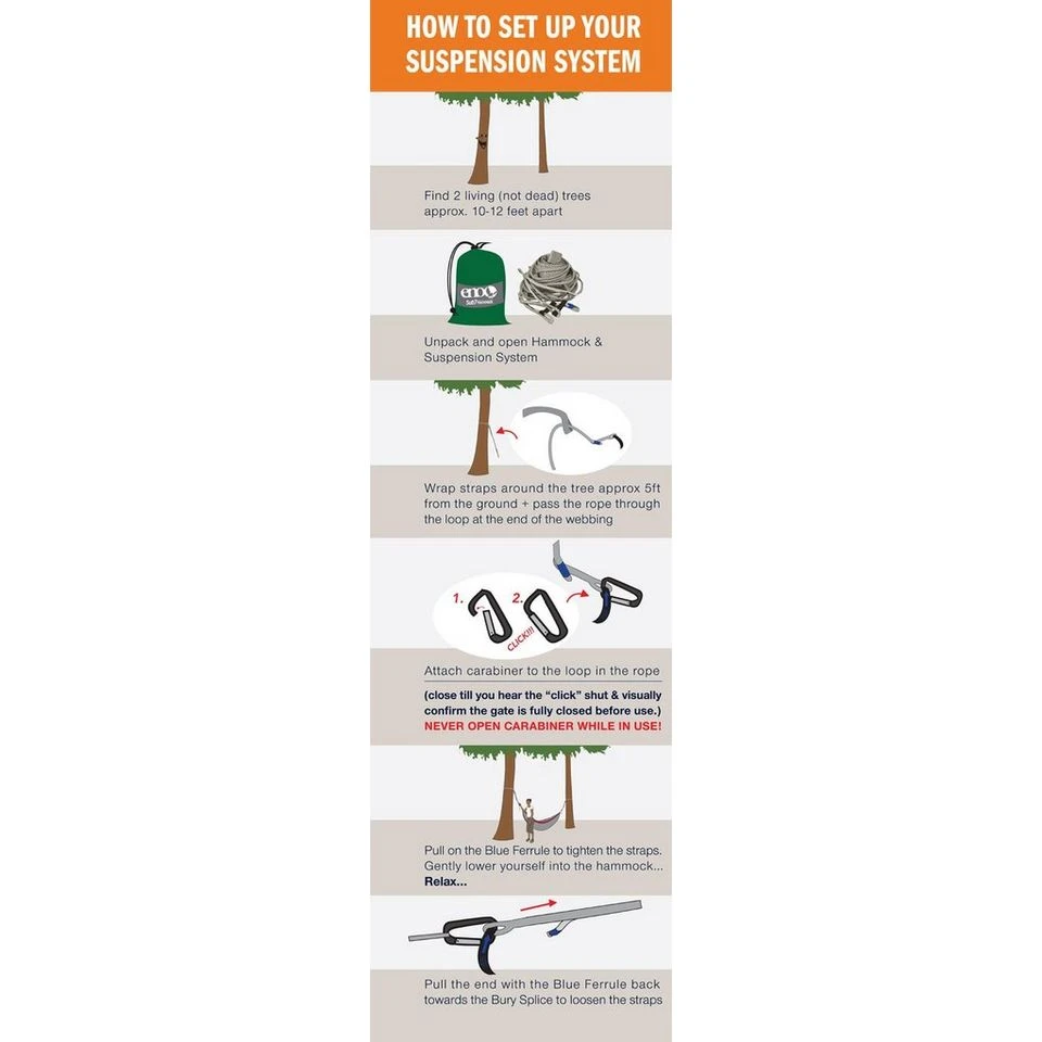 Crafted from super-strong Dyneema line with a polyester blend tree sling, the ENO Helios Suspension System sets up in a flash, giving you superior adjustment with a bury splice. It measures over 8 feet and is able to accommodate even the most awkward of spacing.