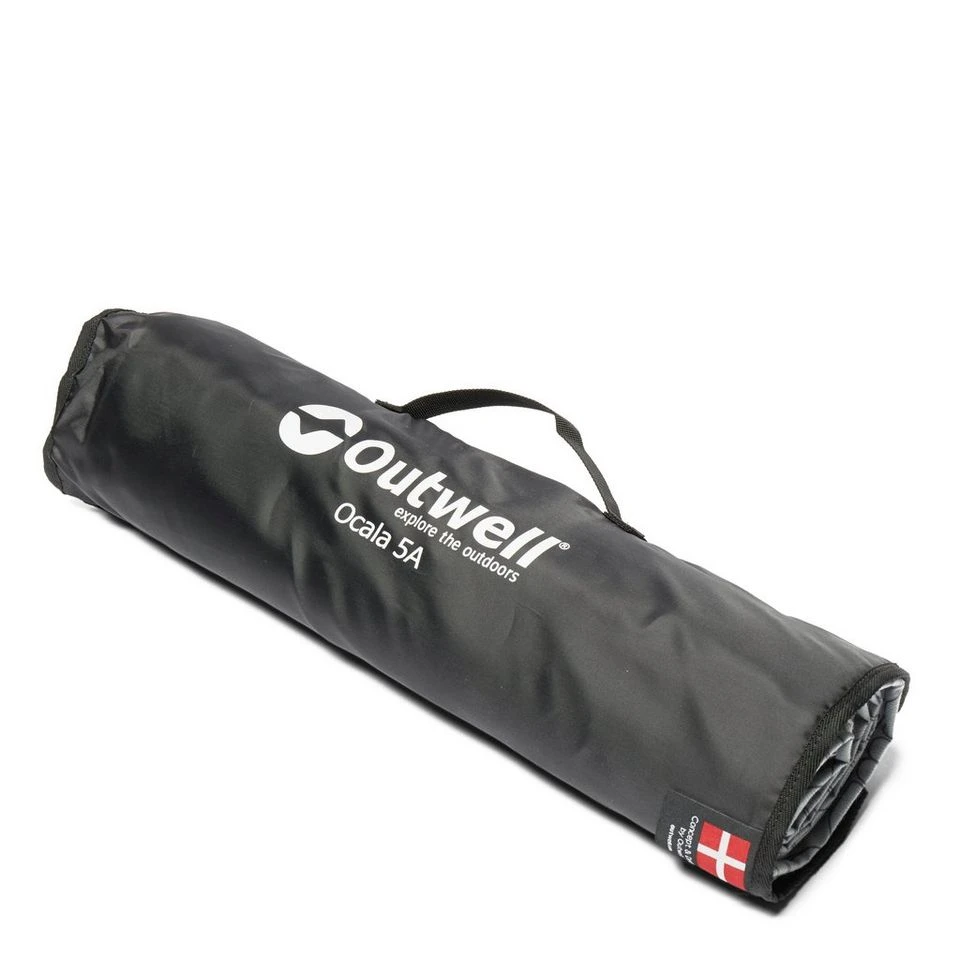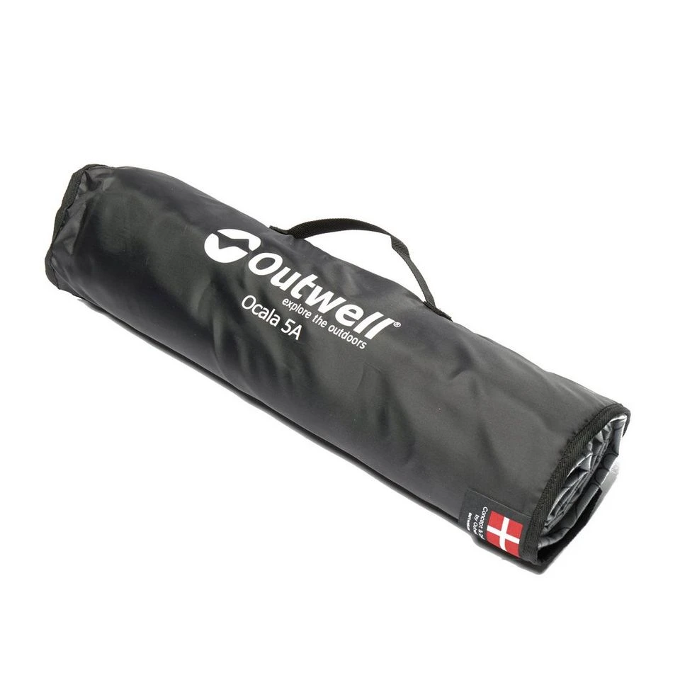 A luxury way to transform your Outwell Ocala 5A tent into a home. The Ocala 5A Flat Woven Carpet combines a soft, warm upper with a dampproof PVC bottom to ensure comfort and protection for family camping. Easily packed away into an integral packing sleeve, the carpet is a piece of portable comfort to help you get away earlier in the season or stay warm in cooler climes.
